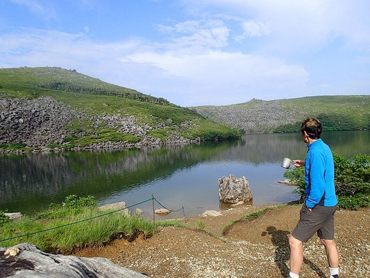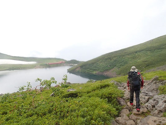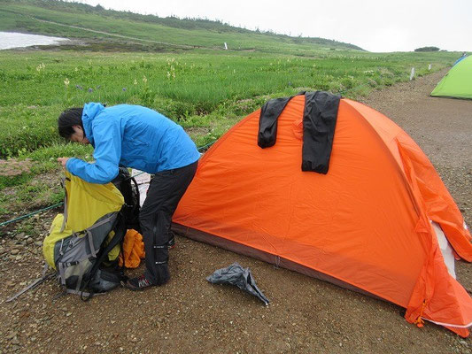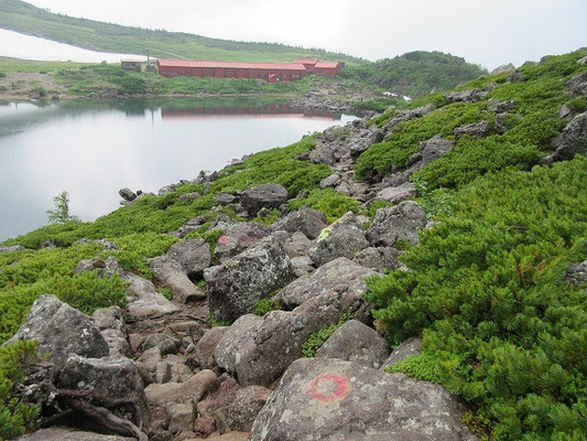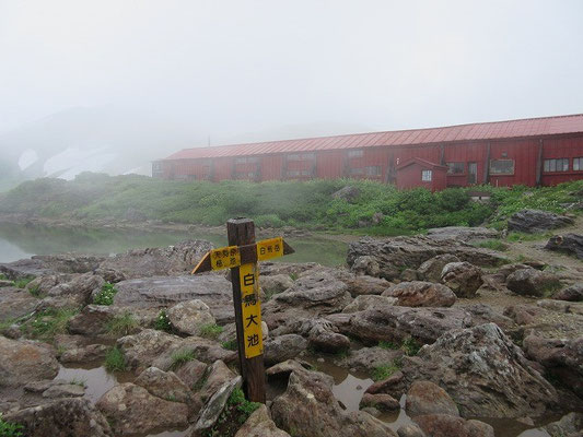 約2.5時間で白馬大池へ。小屋が見えてきたときはほっとした。 2年ぶり白馬大池へ。平日のテント場は10張強。とても静かでゆったりしていた。