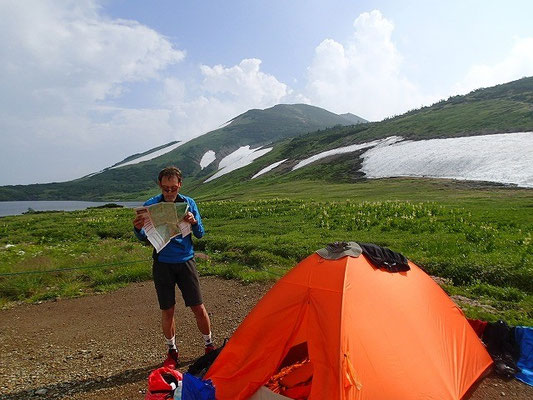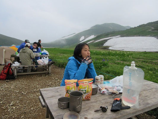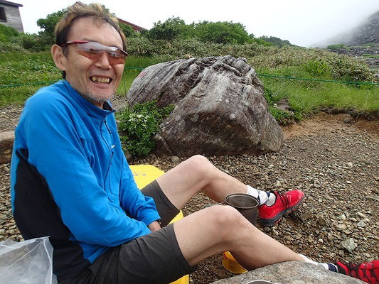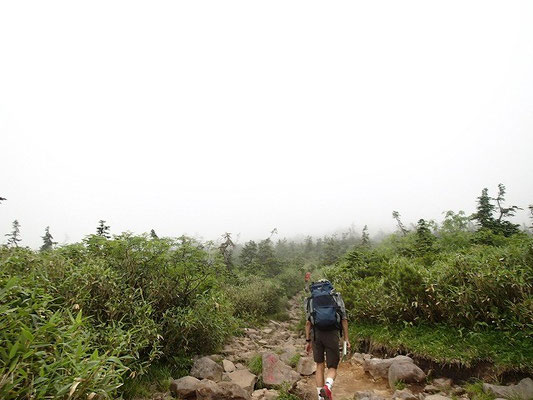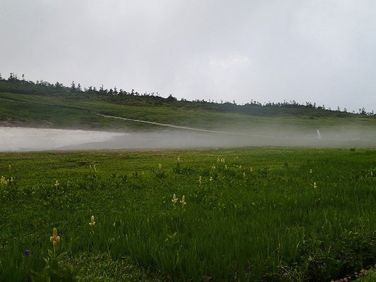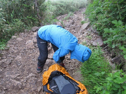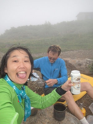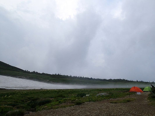 THE OMM UKに出場するため、お互いのコンディションを確認する。といってもFast & lightではあるがミニマムな装備ではなく、のんびりと進む。 登山口から1時間も歩かないうち雷雨。雪渓から乗鞍岳の間、雷におびえながら進む。